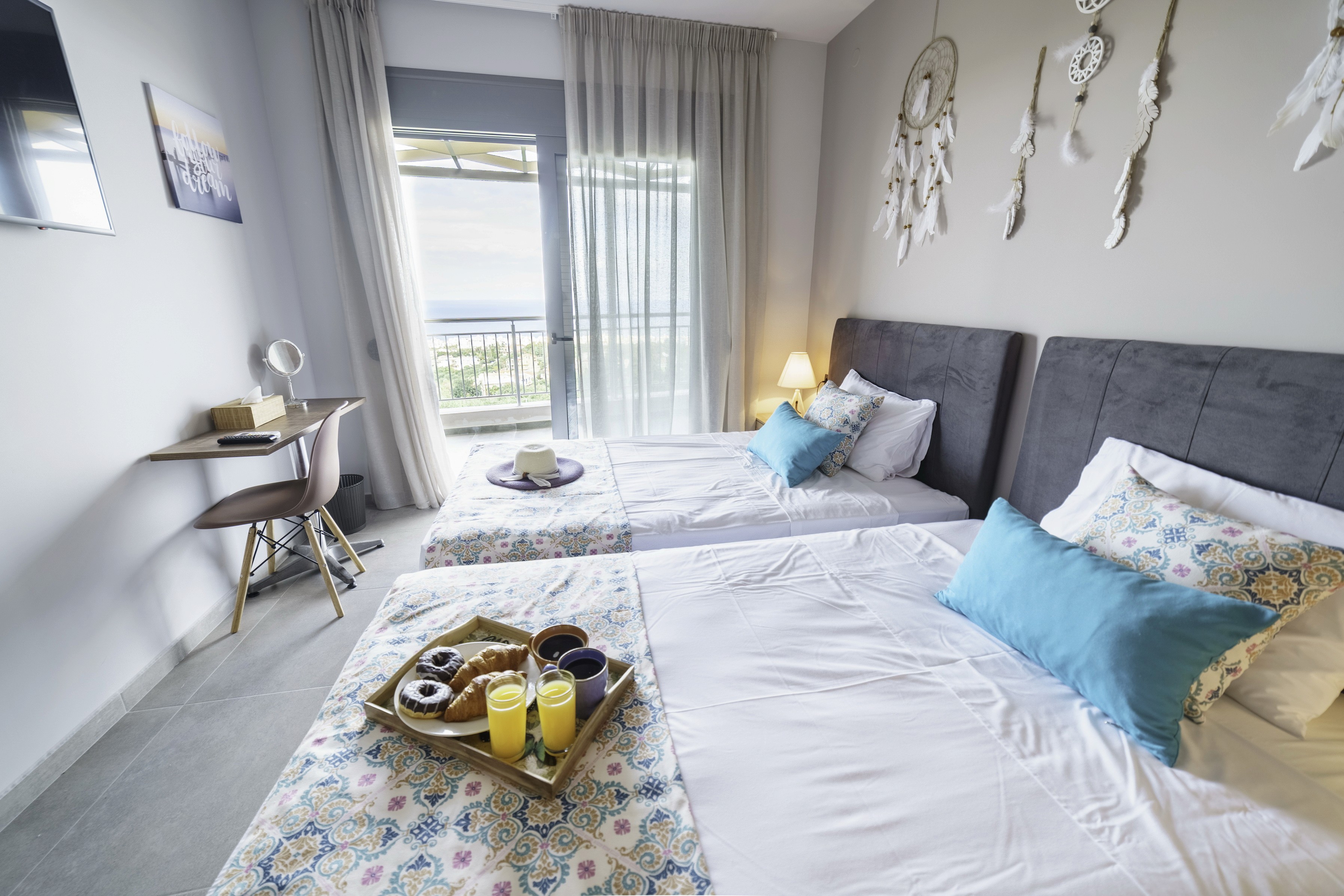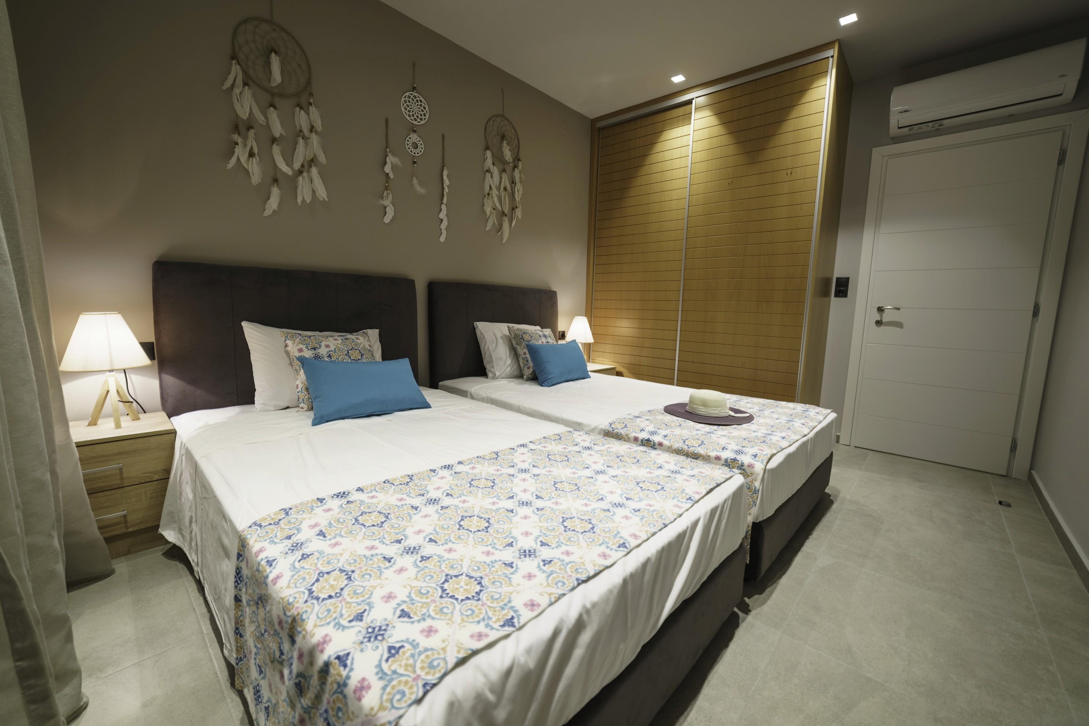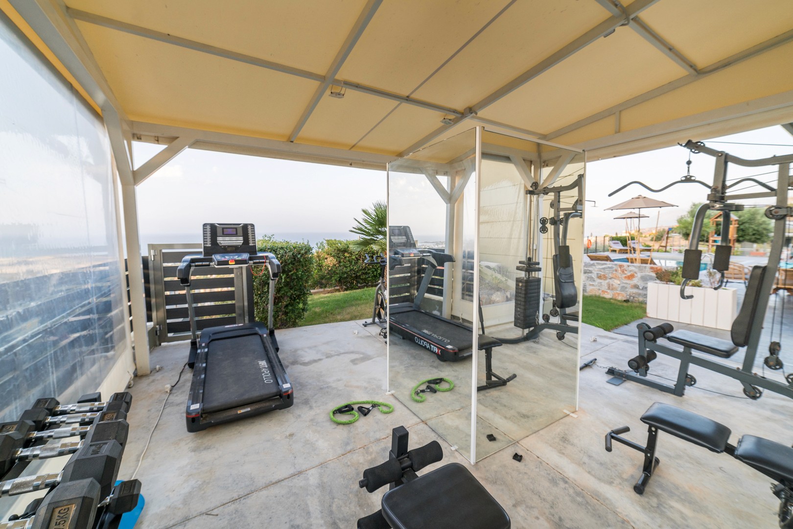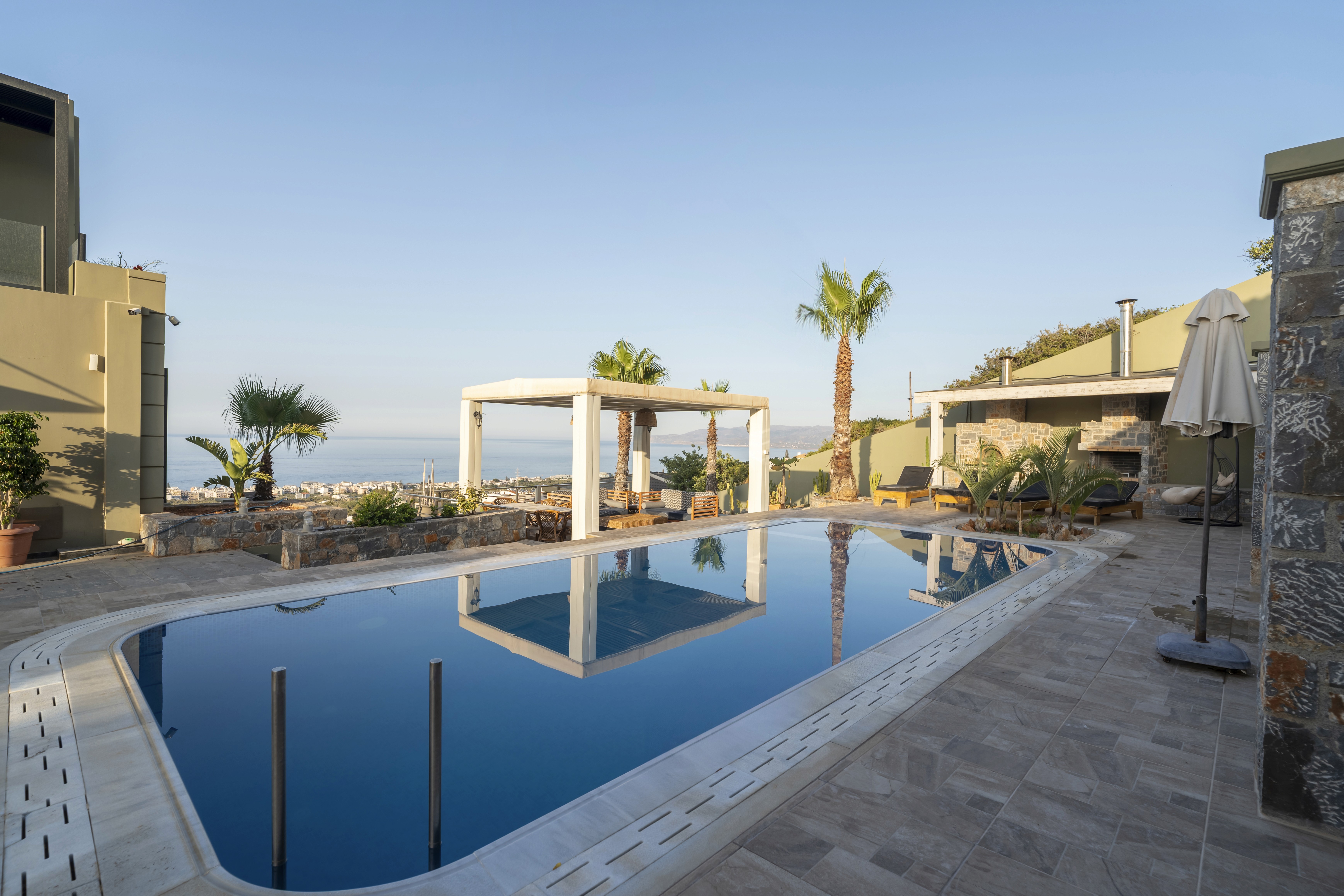 Royal Hill Villa is a luxury 3-bedroom villa in Piskopiano, Crete, offering panoramic sea views over Hersonissos. Set in a peaceful hillside location, it provides the perfect balance of privacy, comfort, and authentic island living. The villa features a private swimming pool, sun loungers, and a spacious terrace with sea views, ideal for relaxing under the Cretan sun. The outdoor areas are designed for comfort, with shaded seating and dining spaces that create the perfect setting for both daytime relaxation and sunset moments. Inside, the villa offers three spacious bedrooms with twin beds, a bright open-plan living and dining area, and a fully equipped kitchen with all essential appliances. Three modern bathrooms ensure convenience and privacy, including one with a jacuzzi bathtub for added relaxation. Additional amenities include air conditioning, high-speed Wi-Fi, private parking, and access to a gym, making the villa suitable for both short and longer stays. Ideal for families, couples, or groups, Royal Hill Villa combines modern comfort, elegant design, and the charm of Crete, offering a complete and memorable holiday experience.