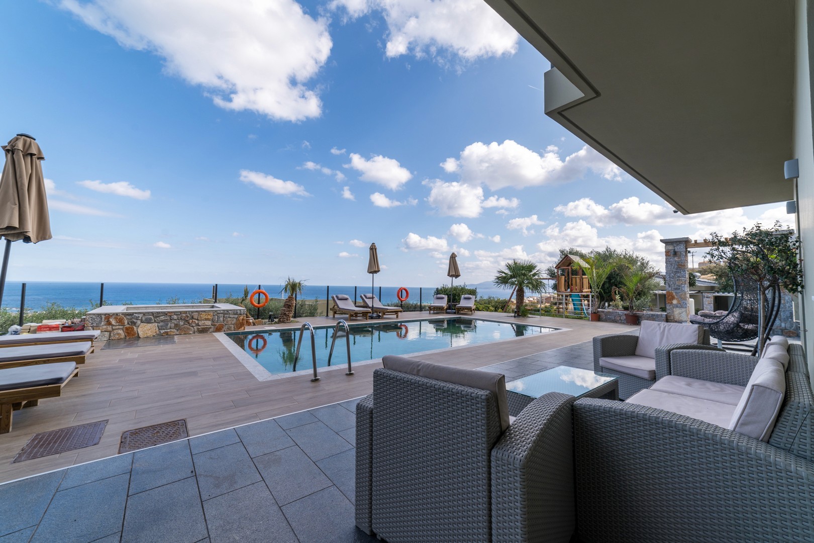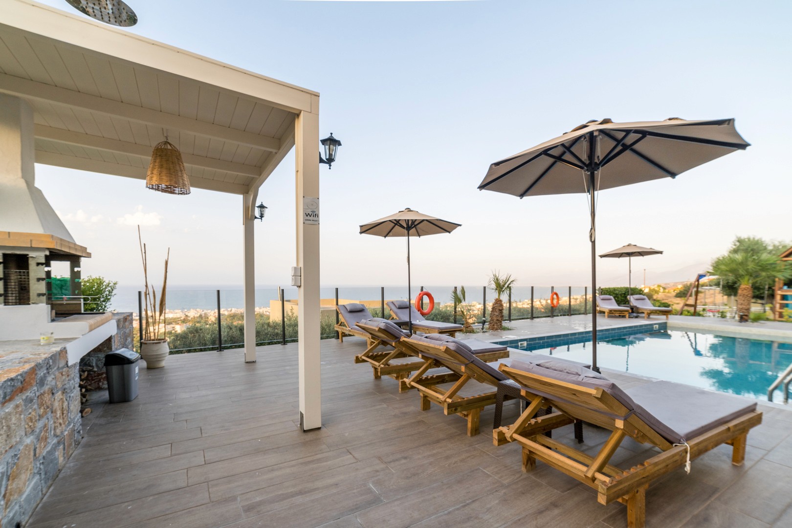 Villa Costantinos is a luxury 3-bedroom villa in Piskopiano, Crete, offering beautiful views over Hersonissos and the sea. Located in a peaceful hillside setting, it’s ideal for a relaxing and private holiday. The villa features a private pool, outdoor jacuzzi, sun loungers, BBQ area, and outdoor dining space, perfect for enjoying the Cretan sun. Inside, you’ll find three spacious bedrooms, a fully equipped kitchen, a comfortable living area, and two modern bathrooms. Guests enjoy amenities such as air conditioning, Wi-Fi, washing machine, private parking, and access to a shared gym. Ideal for families or groups, Villa Costantinos combines comfort, privacy, and authentic Cretan charm.